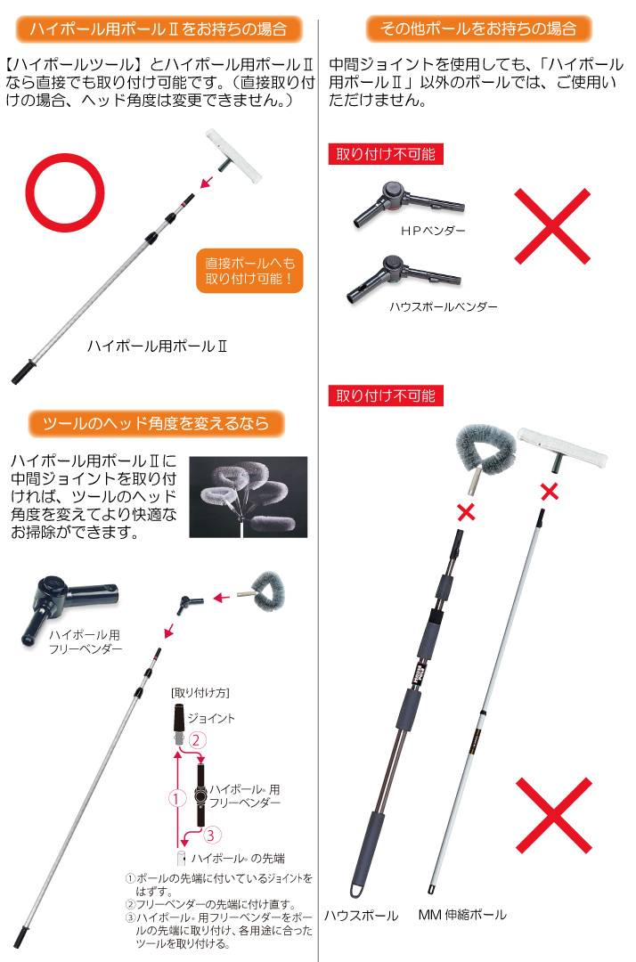 手の届かない窓には、ポールの先端にウォッシャーを付けると危険な作業をすることなく安全に洗うことができます。