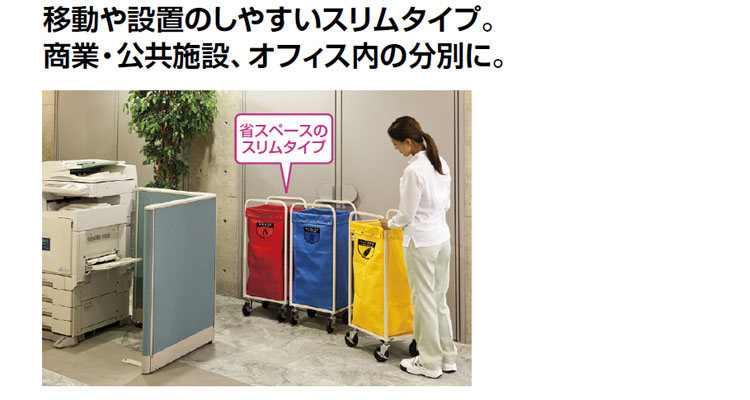 商業・公共施設、オフィス内の分別に最適な、ダストカートのフレームです。移動・設置のしやすいスリムタイプ。フレームのみの販売になります。別売りのコンドルリサイクルカートY-4(ECO袋)または、コンドルリサイクルカートY-4(収納袋)をとりつけてご使用下さい。