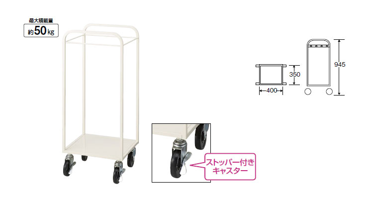 | 幅400×奥行350×高さ945 | 約7 | スチールパイプメラミン焼付 | φ100mm | 約50kg |