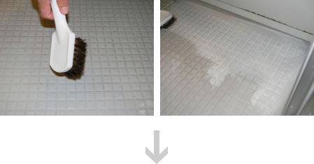 バスルームの床タイルに付着する赤っぽい水垢です。なかなか落ちないという声をよく聞きます。