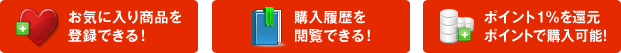 全商品に1%のポイントを還元しています。例えば10,000円のご購入で、100円分のポイント進呈!になります。商品によってはポイント倍もありますので、乞うご期待ください。